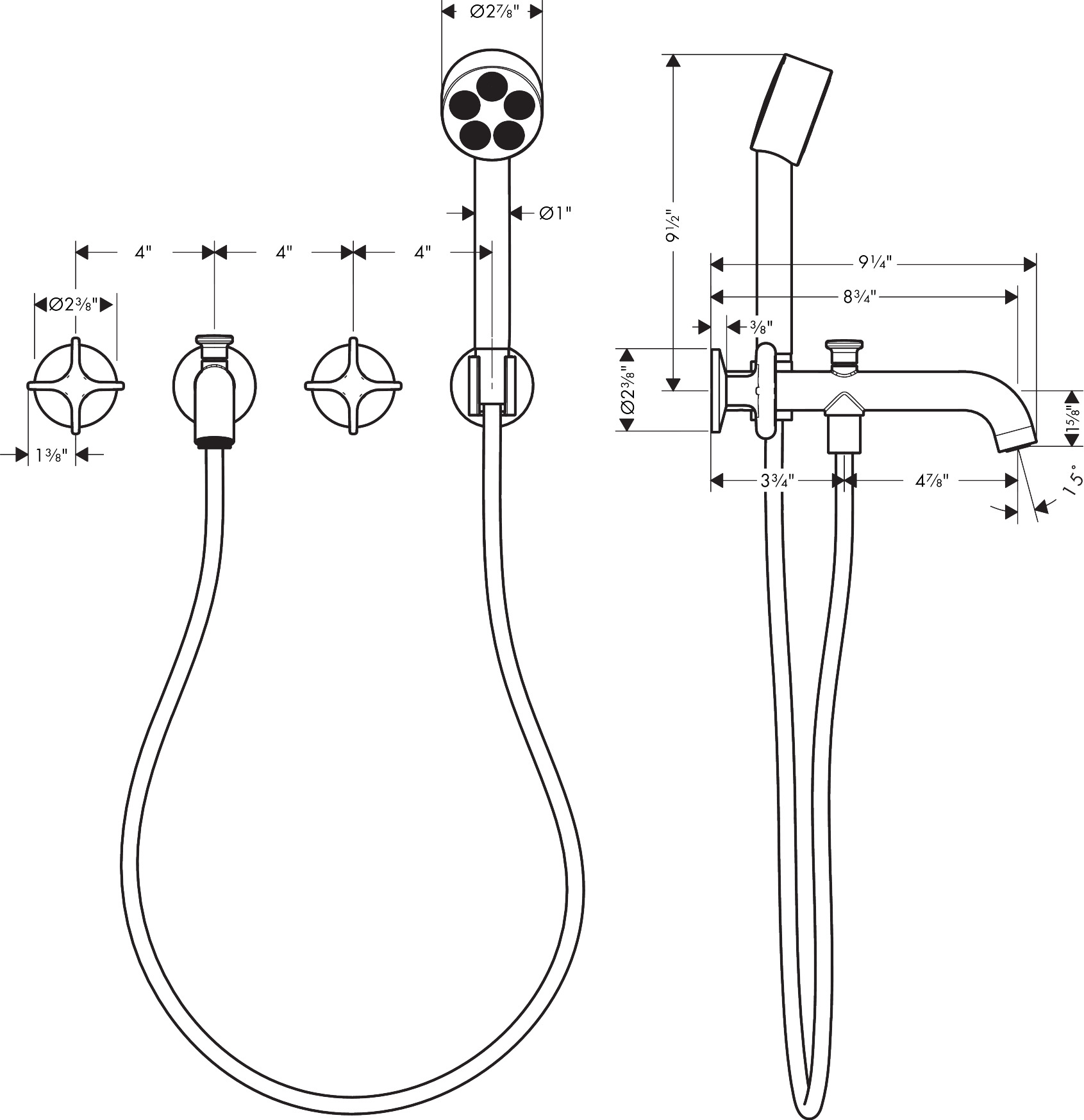 AXOR One3-Hole Wall-Mounted Tub Filler with 1.75 GPM Handshower and Holder - Cross Handles