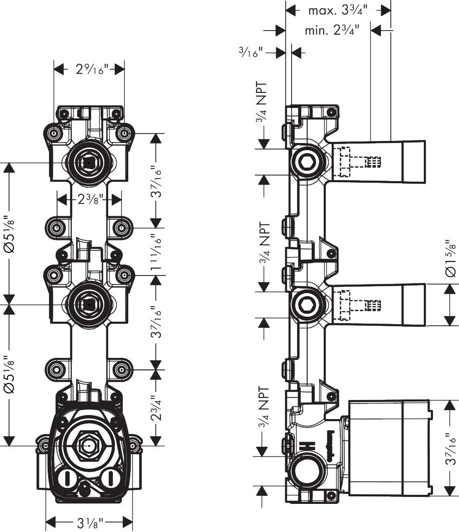 AXOR OneRough, Thermostatic Module with 2 Volume Controls, without Stops