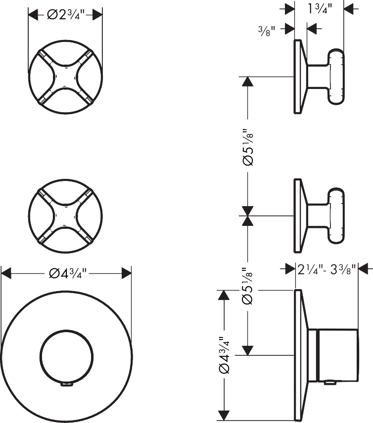 AXOR OneThermostatic Module Trim with 2 Volume Controls, Cross Handle