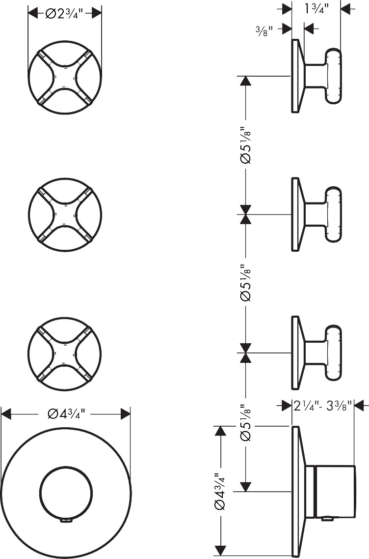 AXOR OneThermostatic Module Trim with 3 Volume Controls, Cross Handle