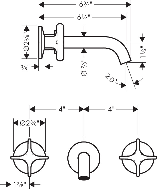 AXOR OneWall-Mounted Widespread Faucet-Cross Handles, 1.2 GPM