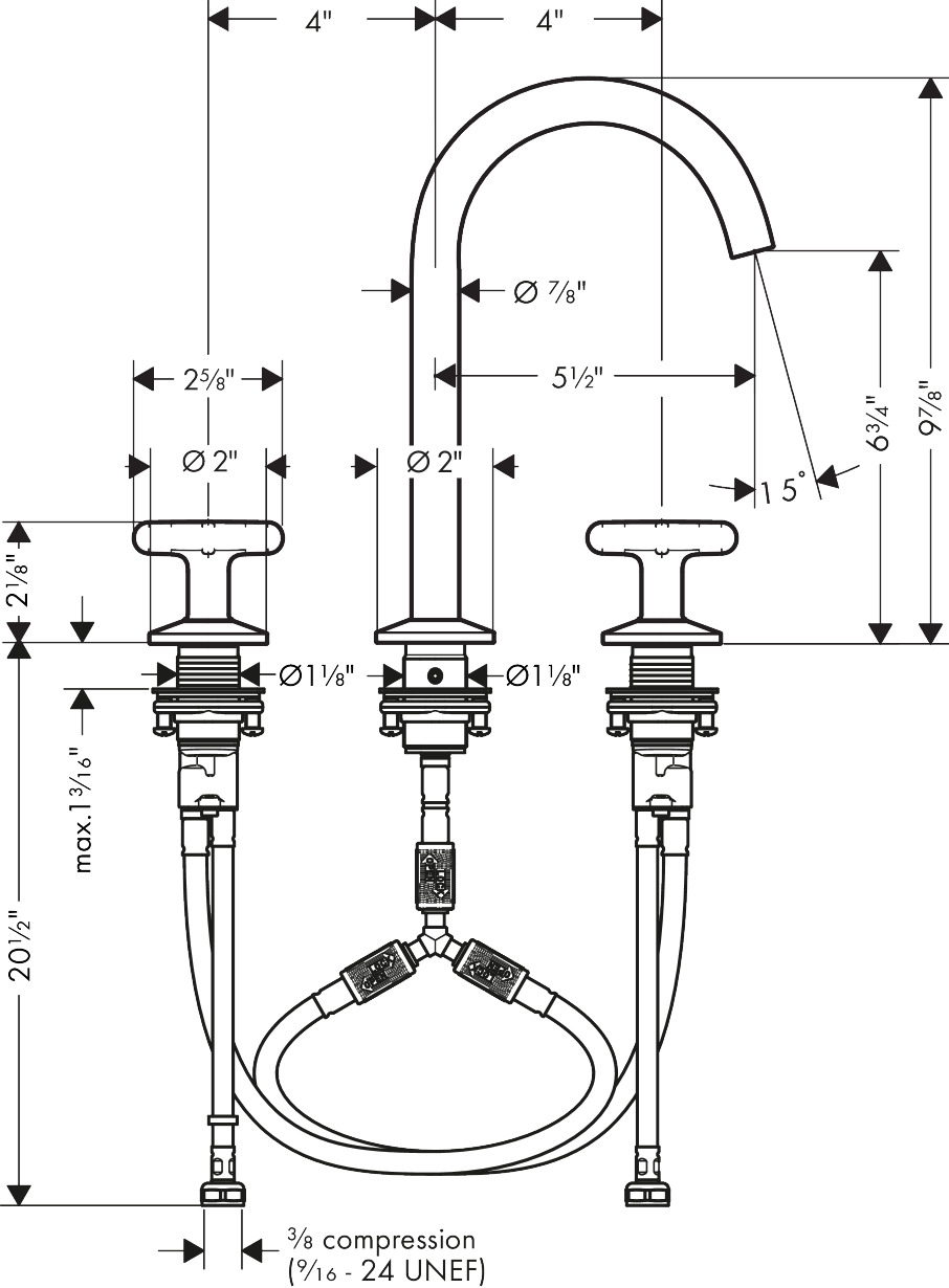 AXOR OneWidespread Faucet 170, Cross Handles, 1.2 GPM, without Pop-up Drain